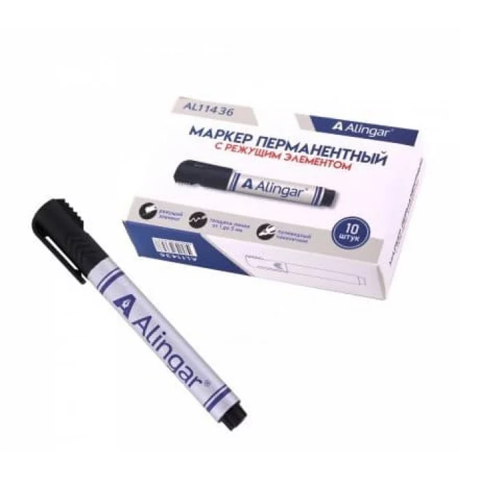Маркер перманентный, с режущим элементом, черный, Alingar, утолщенный пулевидный, 2-3 мм AL11436