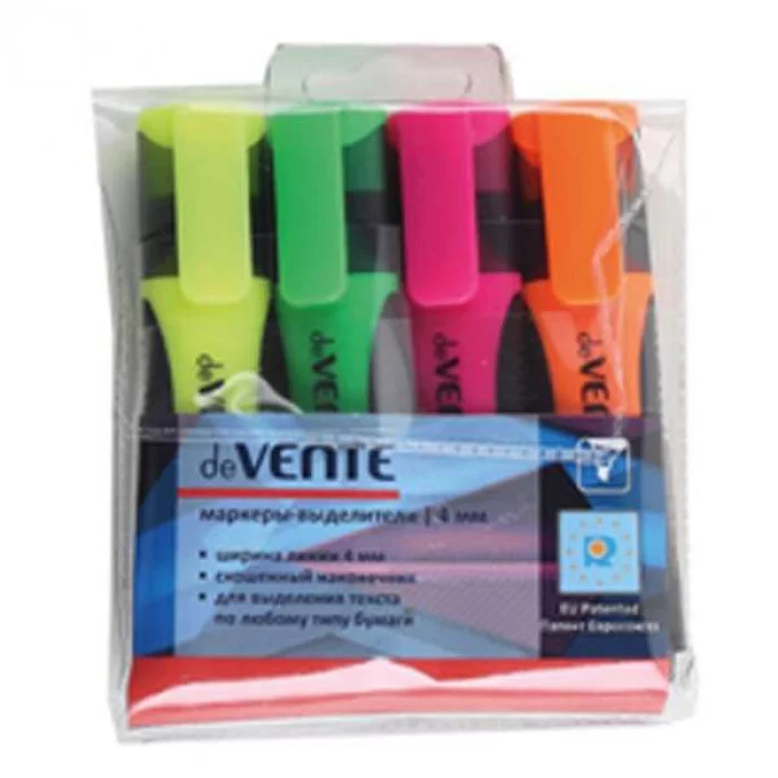 Маркеры в наборе текстовыделители 4 цвета корпус плоский линия 1-4мм ПВХ упаковка е/п DEVENTE 5045329