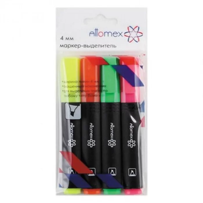 Маркеры в наборе текстовыделители 04цв корпус плоский 1-4мм (ж/з/р/о) е/п ATTOMEX 5045304 298959