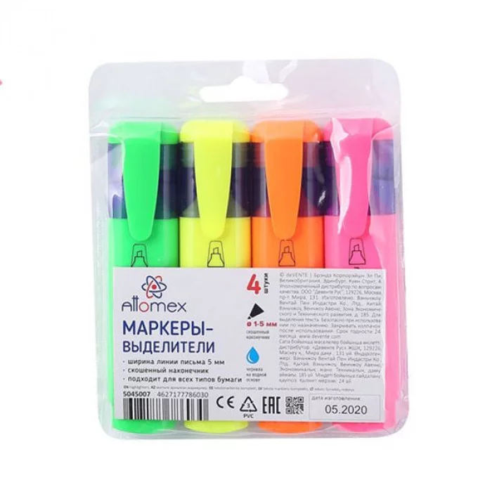 Маркеры в наборе текстовыделители 4 цвета корпус плоский линия 1-5мм е/п ATTOMEX 5045007