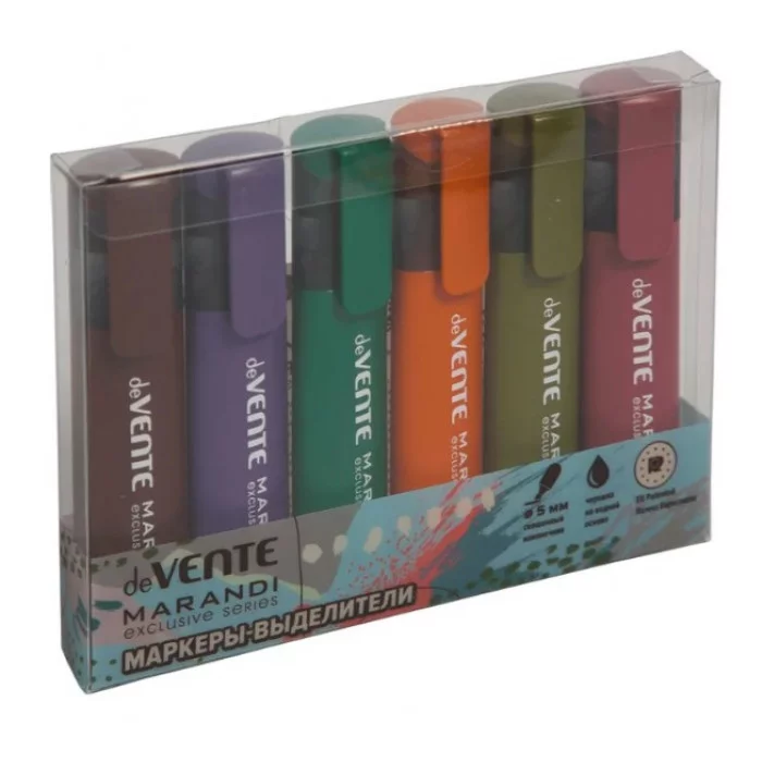 Набор маркеров-выделителей "deVENTE. Marandi" (06 цв. - фисташк., лаванд., персик., аквамарин, капучино, пыльная роза) плоский корпус, скошенный наконечник, ширина линии 1-5 мм, в пластиковом блистере.