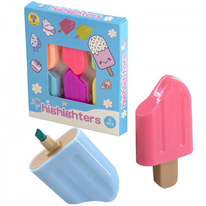 Набор текстовыделителей, 6 цв., Alingar, "Мороженое", фигурный корпус, скошенный, 1-4 мм, пастельные цвета AL11149