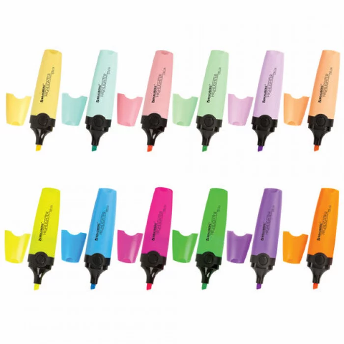 Текстовыделители BRAUBERG "DELTA" предназначены для выделения текста на бумаге любого типа, включая факс-бумагу. В наборе 12 цветов: – 6 неоновых цветов: фиолетовый, голубой, зеленый, желтый, оранжевый, розовый; – 6 пастельных цветов: лавандовый, бирюзовый, мятный, ванильный, персиковый, пастельный розовый. Неоновый цвет позволяет ярко выделить важное в тексте, в то время как особый пастельный оттенок создает мягкие переходы и равномерно подчеркивает необходимую информацию. В комплекте подставка длиной 21 см, которая позволяет удобно расположить набор на столе и обеспечить быстрый доступ к каждому текстовыделителю. Овальная форма корпуса, диаметр которого 25 мм. Скошенный наконечник имеет толщину линии письма от 1 до 5 мм, что обеспечивает удобство при работе с текстом, напечатанным мелким шрифтом, или таблицами. Благодаря особой водной основе чернил текстовыделители не высыхают без колпачка в течение 8 часов. Текстовыделители обладают экономным расходом чернил, при этом длина линии письма достигает 300 метро