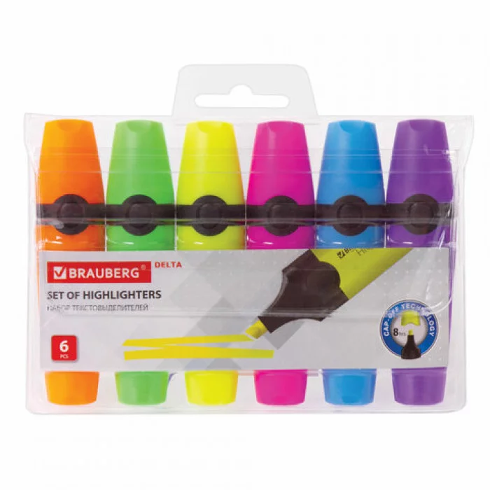 Набор текстовыделителей BRAUBERG 6 шт., АССОРТИ, "DELTA", линия 1-5 мм, 151728