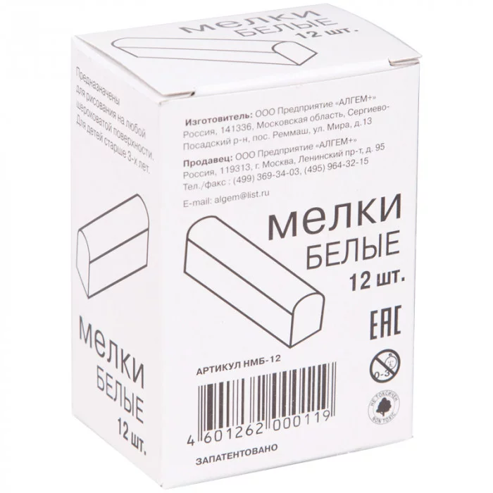 Мелки белые Алгем, 12шт., картонная коробка Алгем 234281