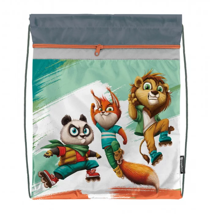 Мешок д/обуви Schoolformat ВЕСЕЛЫЕ ЗВЕРЯТА 42х34х0, 5 2 отд. серый универс. 237189