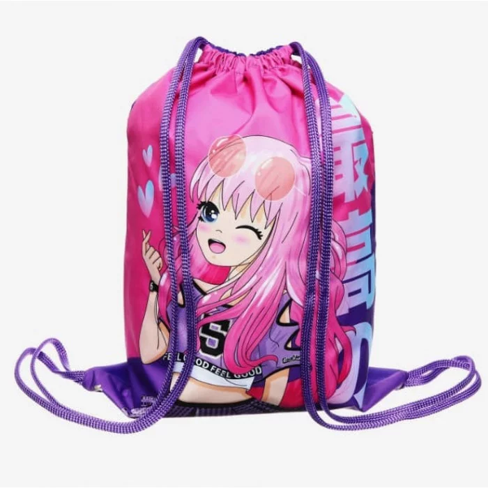 Мешок для обуви с карманом 470 х 370 мм, с ручкой, светоотражающие элементы, Оникс МО-26-1с-2р "Аниме Тянка" 70241