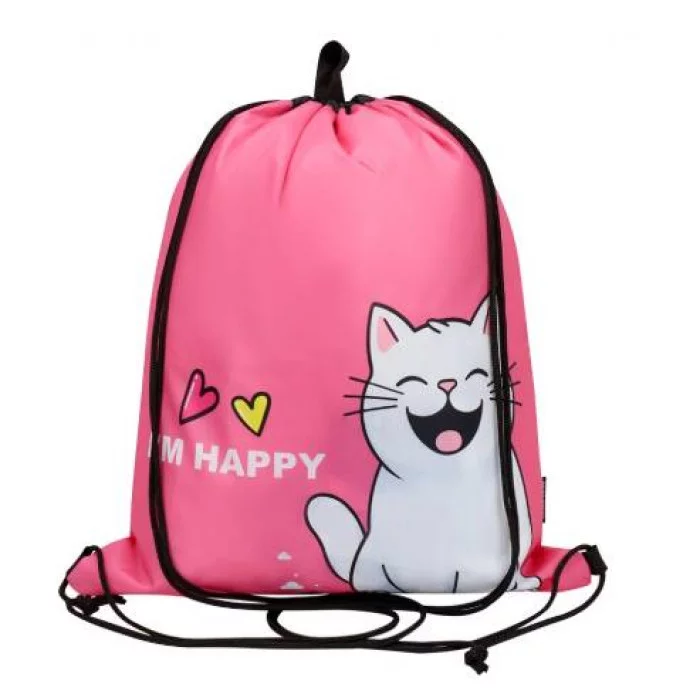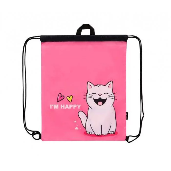 Сумка-мешок для сменной обуви, 2 отделения, двойной шнурок СЧАСТЛИВЫЙ КОТИК (МО-1613) 490х410 МО-1613