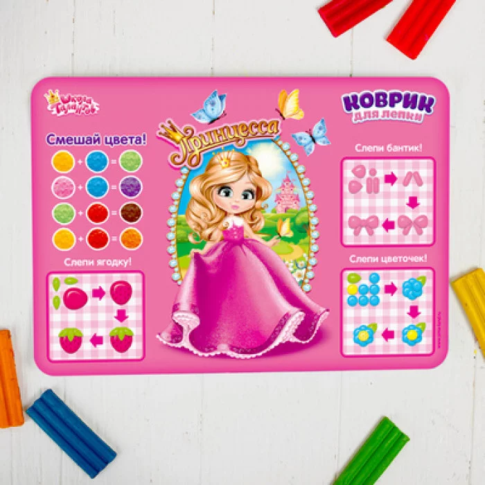Коврики необходимы для занятий лепкой и защиты рабочей поверхности от возможных загрязнений. Они облегчают малышу процессы смешивания разных материалов и создания фигурок и игрушек. Вместе с занятиями лепкой ребенок одновременно учит цвета, животных, цифры или буквы. Коврики прекрасно подходят для изготовления тонких и гибких деталей из пластилина или глины. Творите с удовольствием!