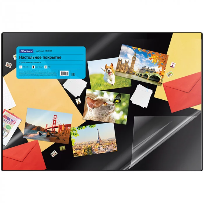 Настольное покрытие OfficeSpace 45*65см, черный, с прозрачным клапаном Спейс 239043
