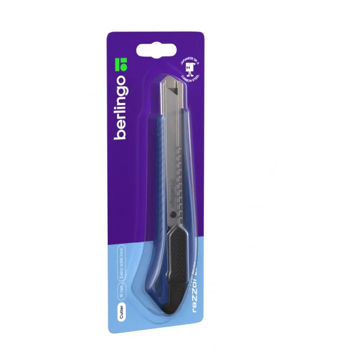 Нож канцелярский 18мм Berlingo "Razzor 200", auto-lock, металл. направл., синий, европодвес 330389