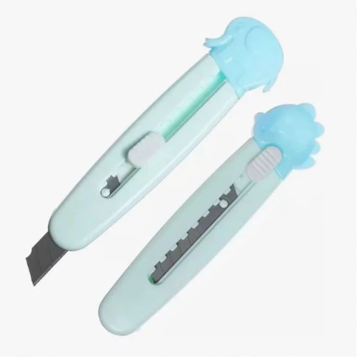 Нож канцелярский Alingar, 9 мм, с механической фиксацией лезвия, цветной пластик. корпус, животные, ассорти, блистер с европод. AL11215