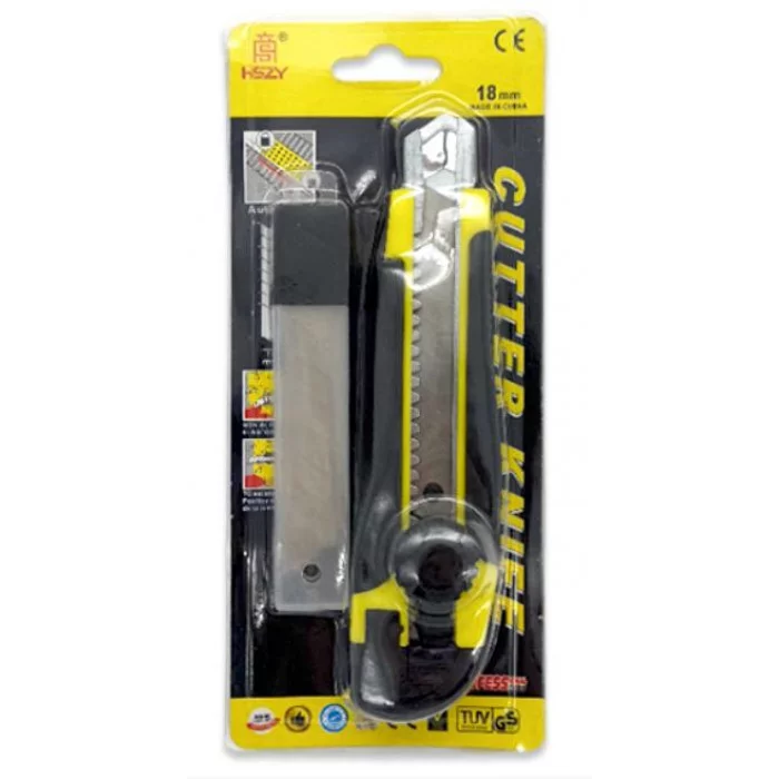 Нож канцелярский (бол) 18мм. DI-777 пластиковый корпус, с резиновыми вставками, двухцветный, с 3мя сменными лезвиями, ассорти, на блистере 332740