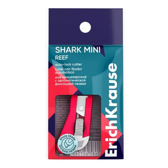 Нож канцелярский ErichKrause Shark Mini Reef, с автоматической фиксацией лезвия, ассорти 62756