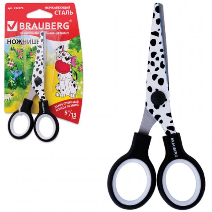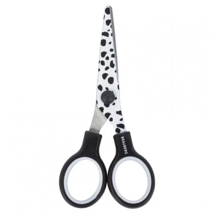 Ножницы BRAUBERG "Kid Series", 130 мм, с цветной печатью "Далматин", чёрно-белые, 232276
