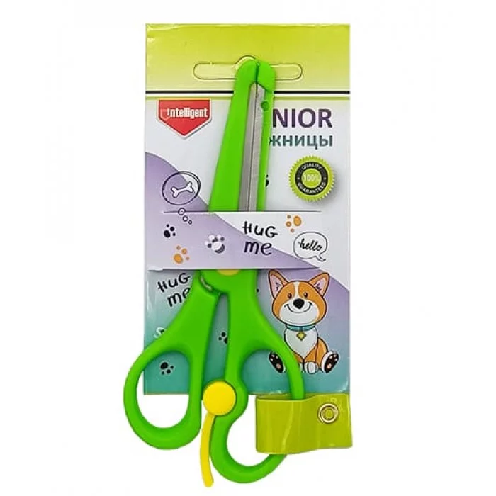 Ножницы детские INTELLIGENT CZ-223 135мм пластиковые ассиметричные ручки, безопасные лезвия, с ограничителем, зеленые, на блистере 327302