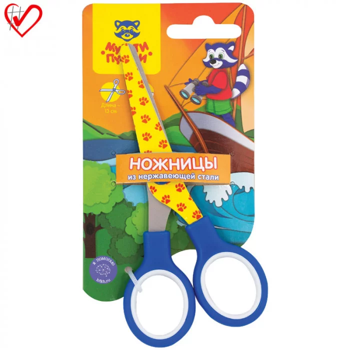 Ножницы детские Мульти-Пульти "Приключения Енота" 13см, с рисунком на лезвиях, ассорти, европодвес 258785