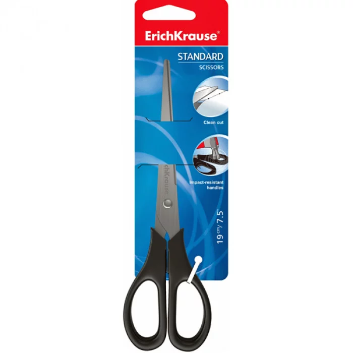 Ножницы ERICH KRAUSE "Standard", 190 мм, черные, в картонной упаковке с европодвесом, 21881