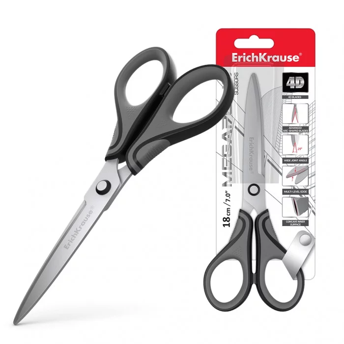 Ножницы ErichKrause® Megapolis, 18см, серо-черный (в блистере 1 шт.) 48161