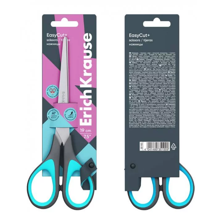 Ножницы ErichKrause EasyCut+, 19см, ассорти 35100