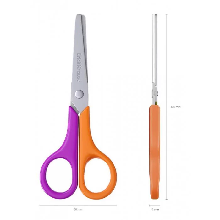 Ножницы с лезвиями из высококачественной нержавеющей стали с безопасными закругленными концами лезвий. Не ржавеют. Ручки классической формы изготовлены из ударопрочного пластика. Товар поставляется в нескольких вариантах цвета/дизайна без возможности выбора.