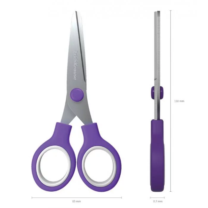 Ножницы из нержавеющей стали с безопасными закругленными концами лезвий. Наличие защитного чехла для безопасного хранения. Окно со вставкой для маркировки и идентификации ножниц.