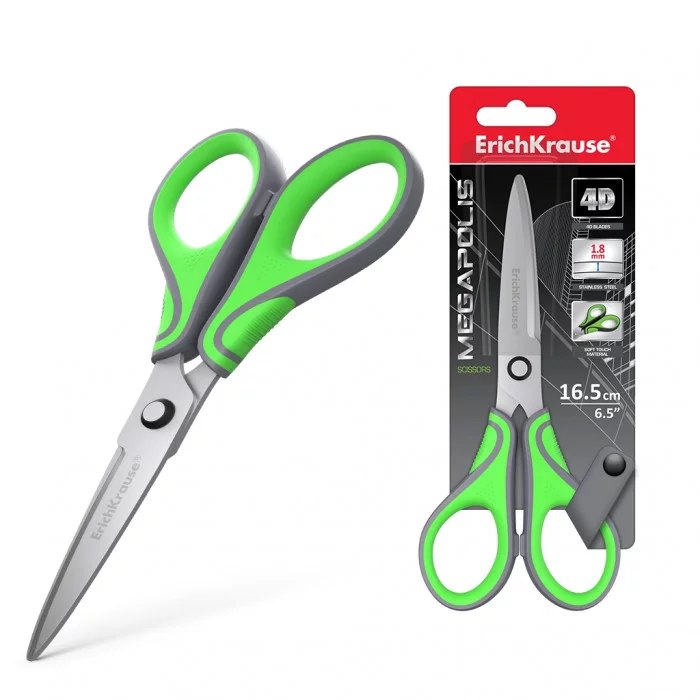 Ножницы ErichKrause Megapolis, 16.5см, серо-зелёный 44887