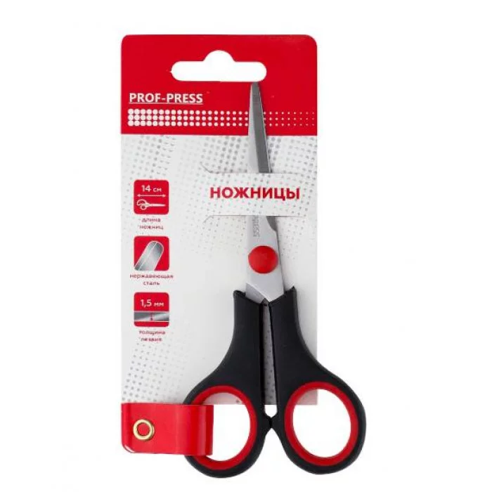 Ножницы канцелярские 14 см (НЖ-1089) двухцв. прорезин. кольца, в карт. блистере, НЖ-1089