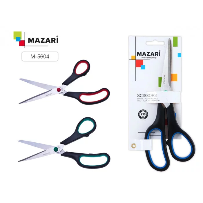 Ножницы офисные, BE TOP, 210 мм, лезвия из нержавеющей стали, пластиковые ручки с резиновыми вставками, блистер с европодвесом M-5604