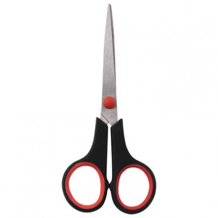 Ножницы STAFF EVERYDAY, 150 мм, бюджет, резиновые вставки, черно-красные, ПВХ чехол, 237497.