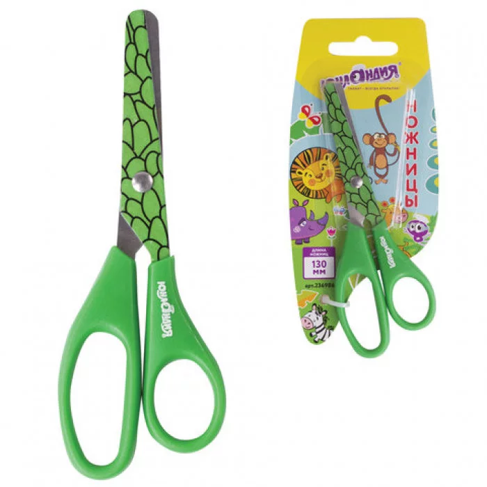 Ножницы ЮНЛАНДИЯ разработаны специально для детского творчества. Техника работы этим инструментом требует координации обеих рук, так как они одновременно выполняют разные движения. Это положительно влияет на развитие мелкой моторики и образного мышления. Ножницы ЮНЛАНДИЯ с эргономичными ручками помогают уменьшить нагрузку на руку ребенка при интенсивной и продолжительной работе.Ребенок без труда сможет пользоваться такими ножницами, так как их длина - 130 мм. Закругленные концы гарантируют безопасность при использовании ножниц по назначению. Лезвия изготовлены из прочной нержавеющей стали, что обеспечивает максимально долгий срок службы и аккуратное разрезание разных видов материалов. Декоративная печать на лезвиях превращает работу с ножницами в увлекательное занятие. Предназначены для правшей. Поставляются в нескольких вариантах цвета (без возможности выбора).