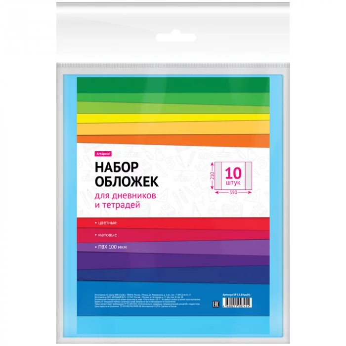 Обложка для дневника и тетрадей, 210*350 ПВХ 100 мкм, 5 цветов, матовые Спейс 185633