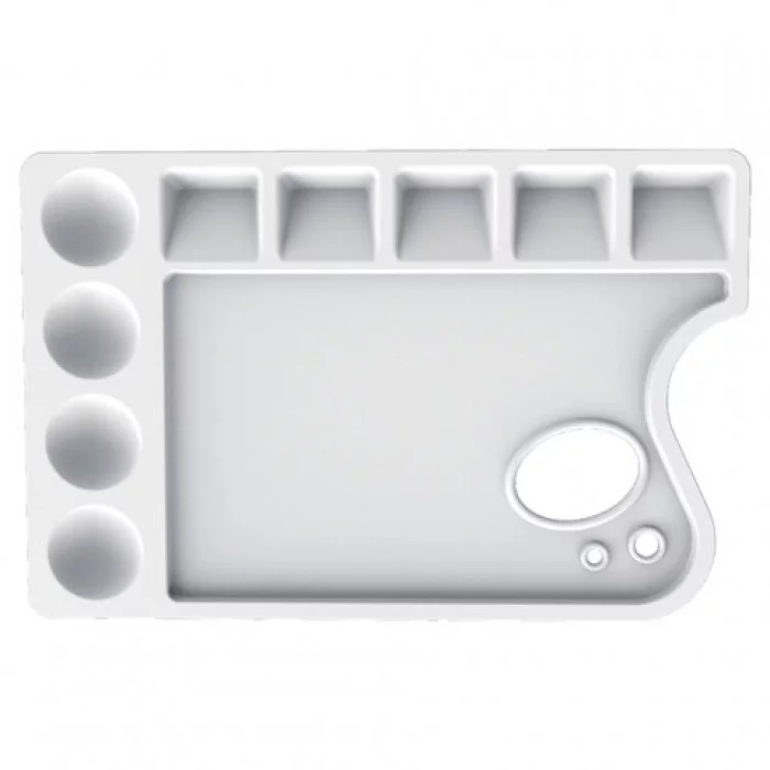 Палитра для рисования ЛУЧ идеально подходит для смешивания красок и получения новых тонов. Является незаменимой и для начинающих художников, и для профессиональных творцов. Легкая и практичная палитра прямоугольной формы с отверстием для большого пальца руки удобно размещается в руке. Изготовлена из пластика белого цвета. Имеет 5 отделений для смешивания красок и 4 - для размещения красок. Размер - 23х15 см, толщина - 1 см. Форма корпуса: прямоугольная. Длина: 23.8 см. Ширина: 15.5 см. Материал: пластик. Цвет: белый. Количество отделений для смешивания красок: 5. Количество отделений для размещения красок: 4. Толщина: 11 мм Бренд - ЛУЧ. Производитель - Россия. Артикул - 29С 1729-08. Штрихкод - 4601185014811