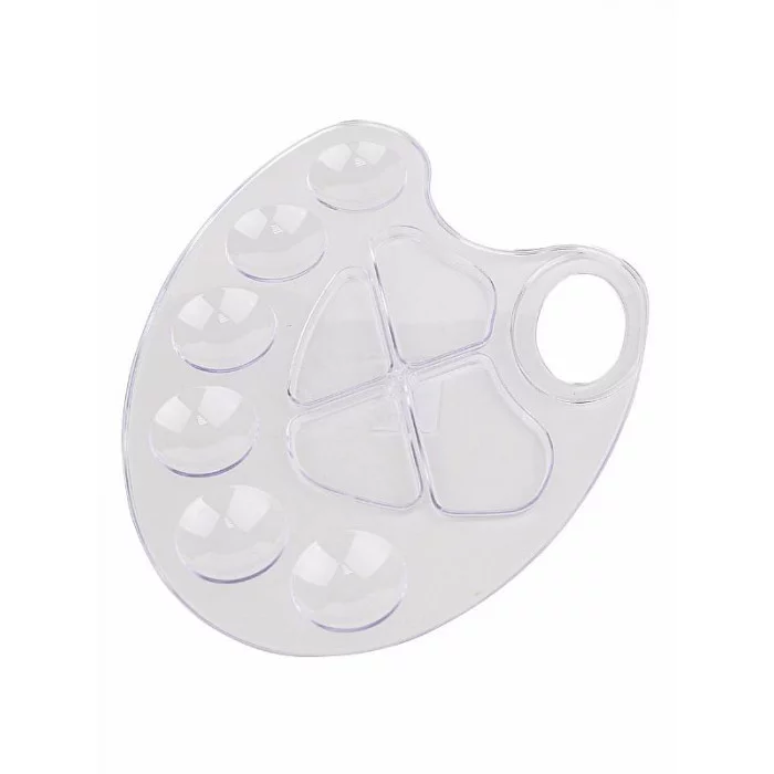 Прозрачная палитра предназначена для смешивания красок и получения новых тонов при рисовании. Гладкая глянцевая поверхность легко отмывается после использования. Материал: пластик.