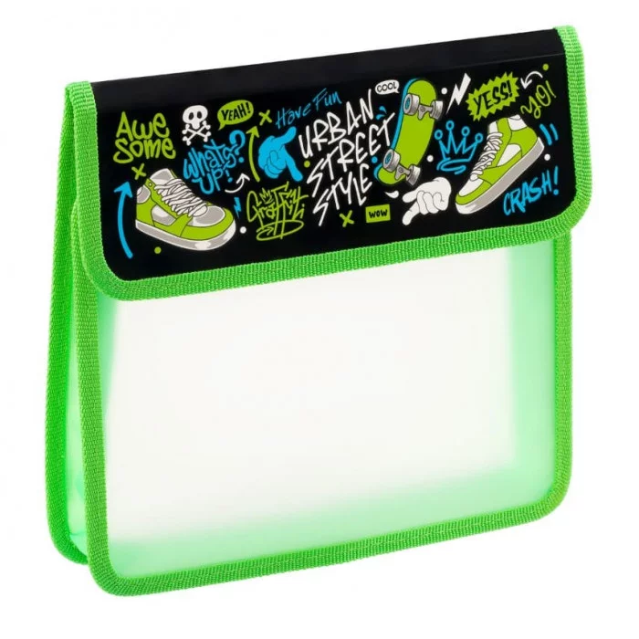 Папка ArtSpace "Street style" предназначена для хранения тетрадей формата А5 и других учебных принадлежностей. Изделие размером 230*215*40 мм состоит из одного отделения. Застёжка-липучка сверху защищает содержимое от грязи и влаги. Папка изготовлена из высококачественного полипропилена с матовой текстурой «песок», на которой не видно отпечатков пальцев и мелких царапин. Края имеют тканевую окантовку.