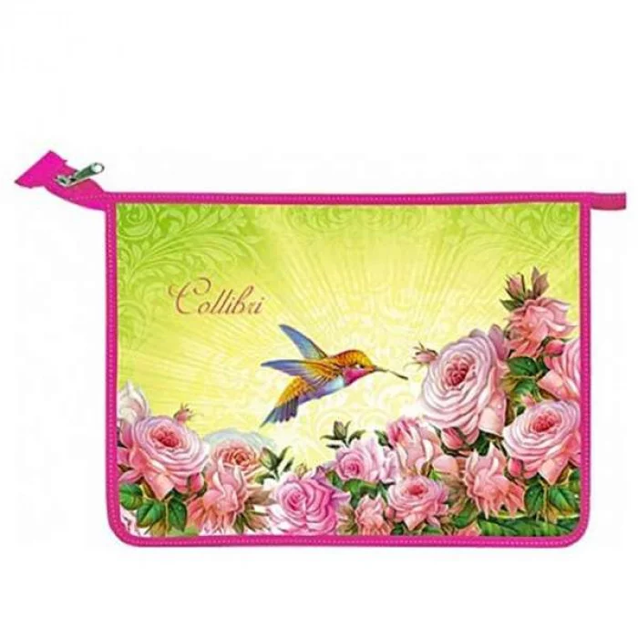 Папка для тетрадей А5 молния сверху блест "Колибри в розах" КАНЦБУРГ 61Ш5_238 077623