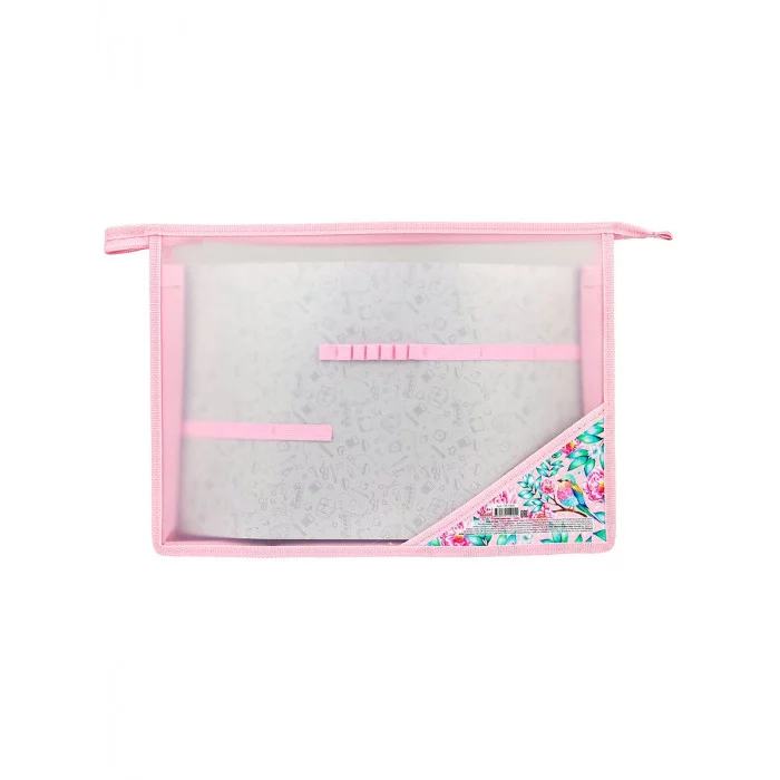 Папка для труда на молнии сверху, с двумя отдел. РАЙСКИЕ ЦВЕТЫ И ПТИЦЫ (ПТ-5905) пластик ПТ-5905