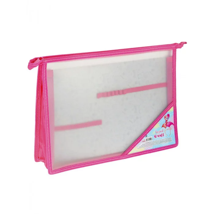 Папка для труда на молнии сверху, с двумя отдел. ЯРКИЕ ФЛАМИНГО (ПТ-5904) пластик ПТ-5904