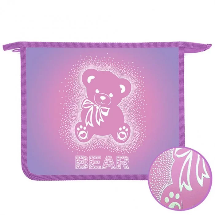 ПТ- 73-12 Мишка с бантом -папка д/тетр. А5 на молнии, дизайн с двух сторон