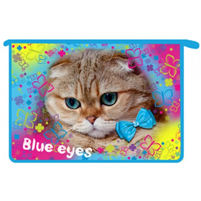 ПТ- 83 Голубоглазая кошка -папка д/тетр. А4 на молнии, дизайн с двух сторон