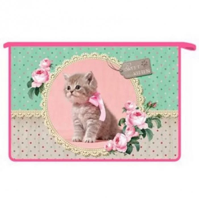 ПТ- 83 Котёнок с бантом -папка д/тетр. А4 на молнии, дизайн двух сторон