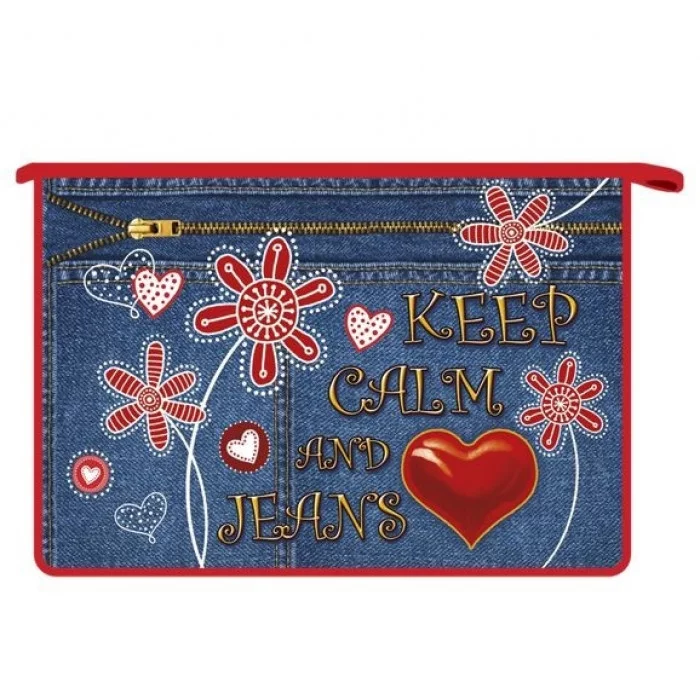 ПТ-83 Сердечки на джинсе-папка д/тетрадей А4 молнии