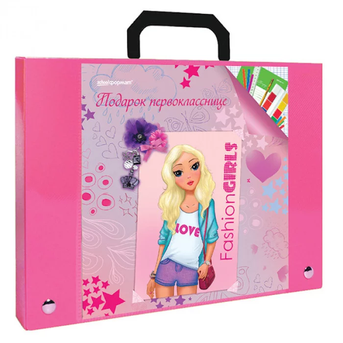 Портфель пластиковый розовый ПОДАРОК ПЕРВОКЛАССНИКУ ЦВЕТОЧНЫЕ ФЕИ schoolФОРМАТ 072834