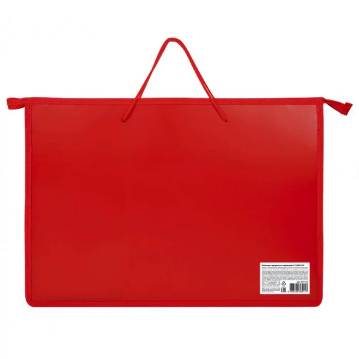 Папка ПИФАГОР предназначена для хранения чертежей, рисунков и других художественных изображений формата А3. Выполнена из пластика, по краям имеет тканевую окантовку. Одно отделение. Застежка-молния расположена по верхнему краю папки.