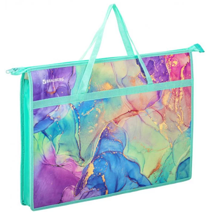 Папка для рисунков и чертежей с ручками BRAUBERG А3, пластик, молния сверху, "Marble", 271435