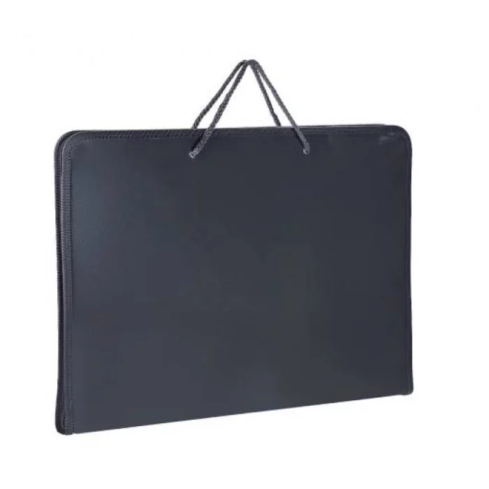 Папка для рисования формата А3 из прочного фактурного пластика предназначена для хранения и переноски рисунков, чертежей, тетрадей, альбомов и прочих принадлежностей. Одно объемное отделение закрывается на круговую молнию, надежно защищая принадлежности от попадания пыли и влаги. Дополнена текстильными шнурками для удобной носки. Цвет:серый.