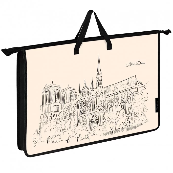 Папка с ручкой А3 НОТР-ДАМ для рисунков, на молнии пластик кремов. 191822