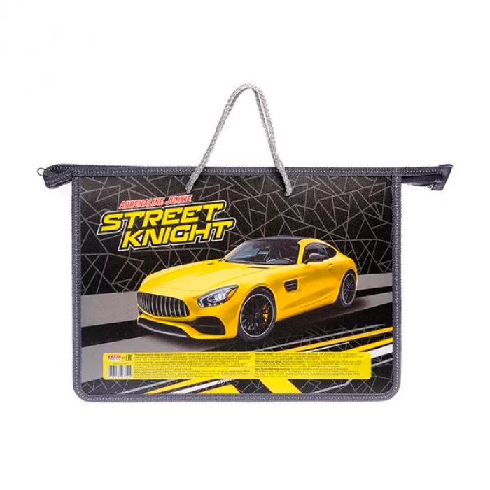 Папка А4 пластик молния сверху/ручки шнур "Желтый спорткар" ПРОФ-ПРЕСС П-6754 077844