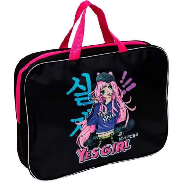 Папка А4 ткань молния сверху/ручки тесьма/бок 7см "Yes Girl" ATTOMEX 3076401 709251
