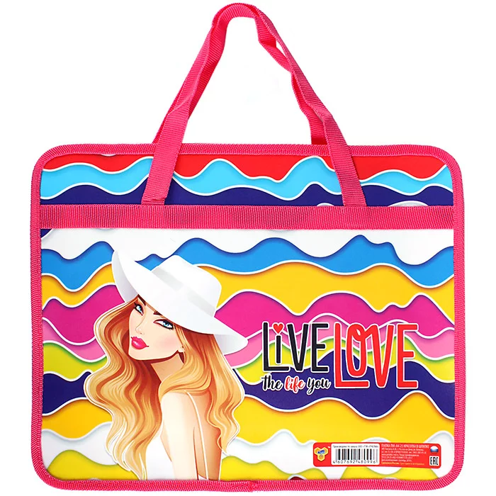 Папка детская с ручками А4 пласт. рисунком на молнии Красотка в шляпке ПМ-А4-25